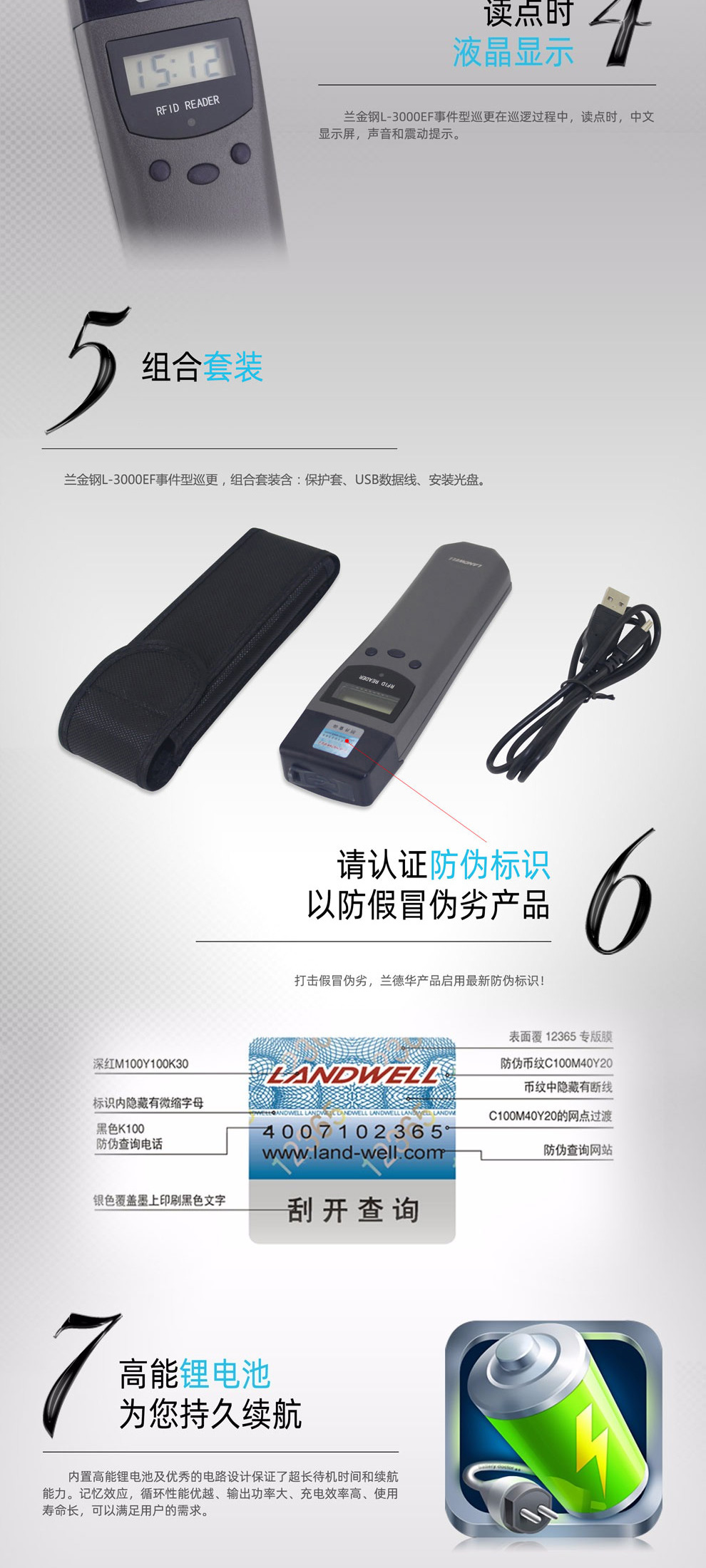 蘭德華(LANDWELL)Landwell蘭德華智能電子巡更系統(tǒng)L-3000EF系列自動感應(yīng)式巡更棒L-3000EF-1 自營