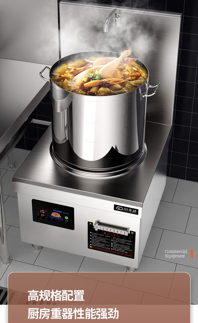 ¥11727.30廚豐達(dá)商用電磁爐大功率平面煲湯爐酒店吊湯爐食堂廚房節(jié)能電磁灶單頭矮湯爐低湯爐8kw