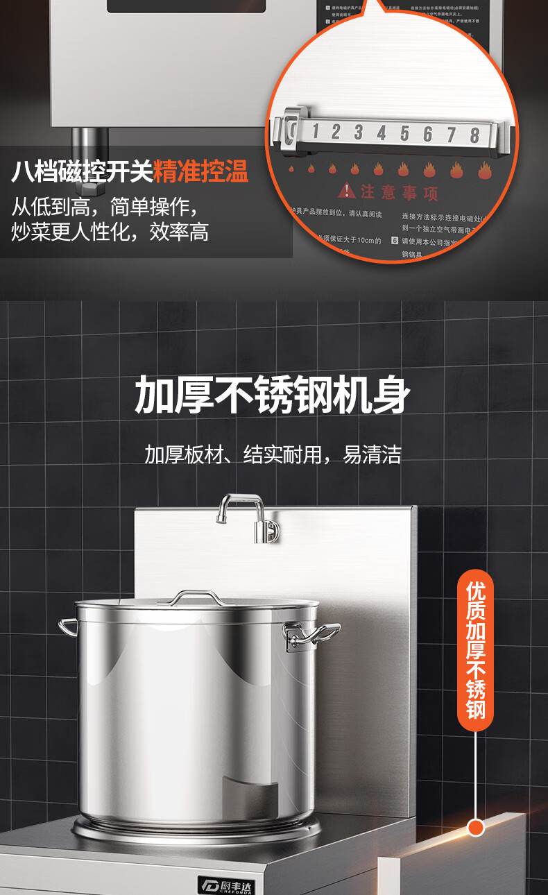 廚豐達(dá)大功率商用電磁爐304商用電磁灶大鍋灶學(xué)校單位食堂專用猛火電炒鍋電磁電灶臺12kw一價全包