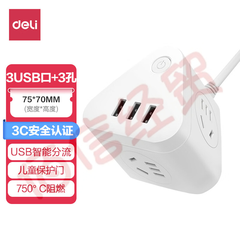 得力(deli)三角魔方插座智能USB插座插排/插線板/接線板/排插3USB接口+3組合孔總控全長1.5米18321 自營