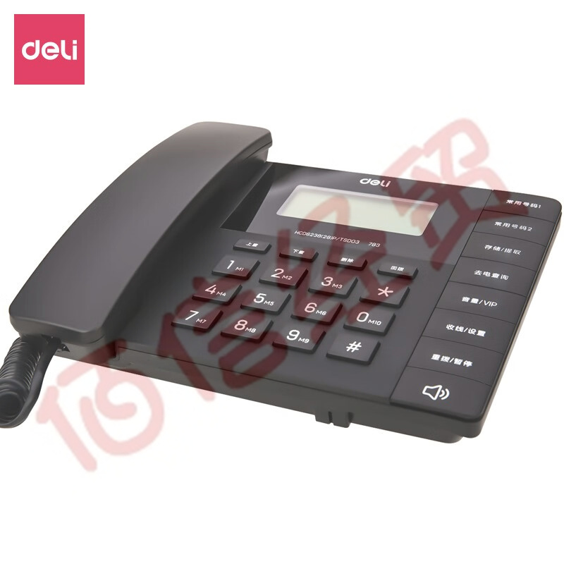 得力(deli)來電顯示辦公家用電話機固定電話座機有線酒店前臺客服電話壁掛話機固話機固話座機13567(黑色-白色) 自營