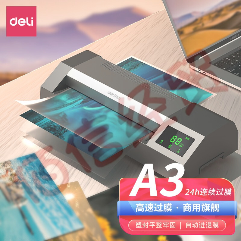 得力(deli)照片塑封機辦公家用過塑機相片覆膜機熱裱照片文件多尺寸壓膜過塑機A3觸控面板24h連續(xù)過膜14371 自營