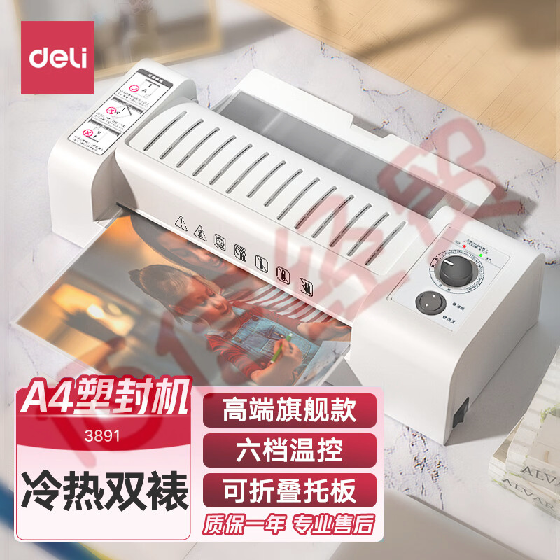 得力(deli)3891家用辦公過膜機(jī)過塑膜適用A4自動(dòng)進(jìn)退膜文件照片塑封機(jī)/過塑機(jī)灰色 自營(yíng)