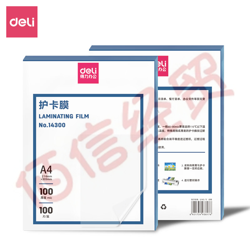 得力(deli)過(guò)塑膜多規(guī)格塑封膜護(hù)卡膜照片文件資料過(guò)塑膜透明【A4100張】厚度100mic(14300) 自營(yíng)