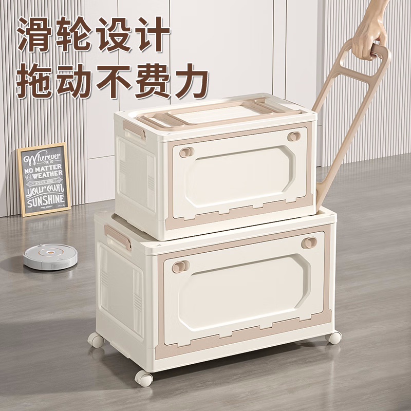 拉桿書(shū)本收納箱卡其色-大號(hào)【帶萬(wàn)向輪+拉桿】 1個(gè)裝