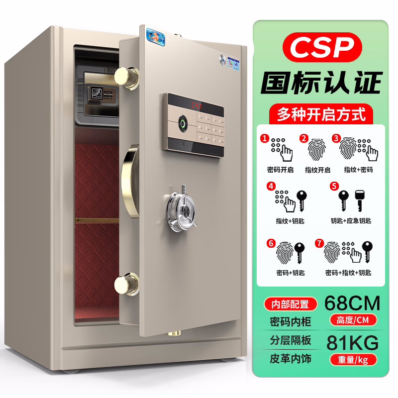 ¥659.00虎牌保險(xiǎn)柜家用辦公小型指紋密碼保險(xiǎn)箱全鋼防盜床頭保密柜可入墻入柜保管箱博雅系列白色60cm