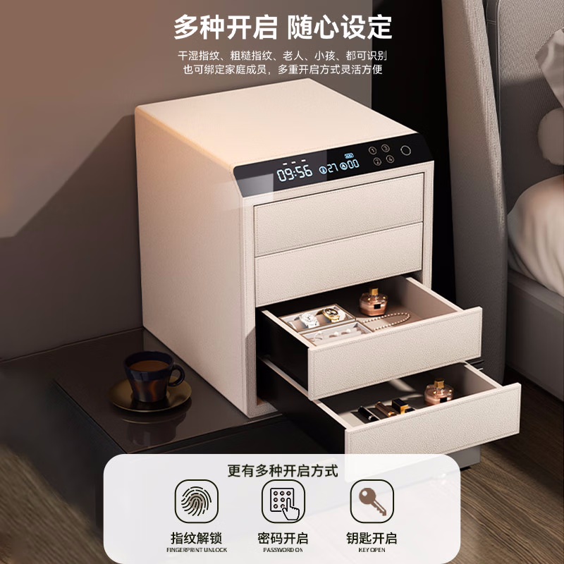 虎牌保險柜家用辦公小型指紋密碼保險箱全鋼防盜床頭保密柜可入墻入柜保管箱博雅系列白色60cm