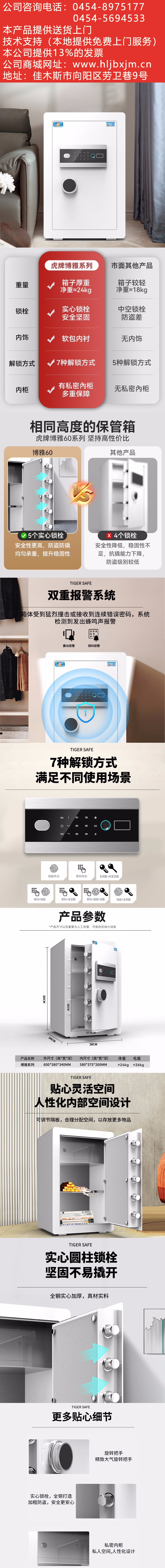 虎牌保險柜家用辦公小型指紋密碼保險箱全鋼防盜床頭保密柜可入墻入柜保管箱博雅系列白色60cm