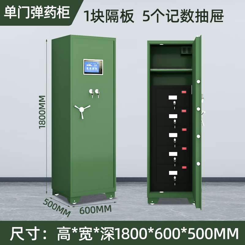 匯云星智能槍柜防爆防盜密碼鎖鋼制器械柜軍綠色單門一隔板+5記數(shù)抽屜 自營