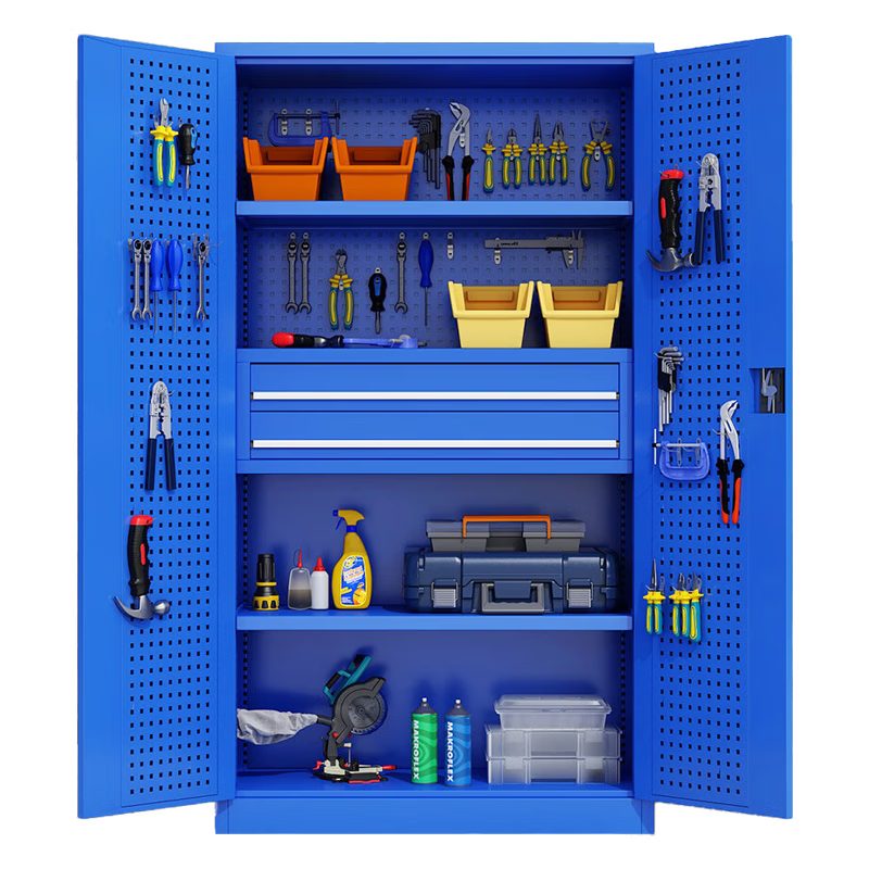 匯云星重型工具柜鐵皮五金儲(chǔ)物柜工廠車間用帶抽屜汽修多功能收納柜 三抽帶網(wǎng)藍(lán)色 加厚款 自營