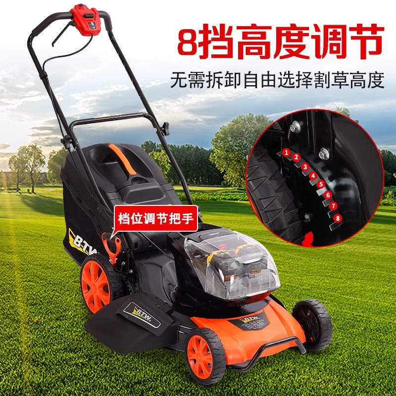 利晨60V電動草坪機修剪機手推割草機充電式鋰電池除草剪草打草推草機 20寸草坪機(側排后排,四電一沖)