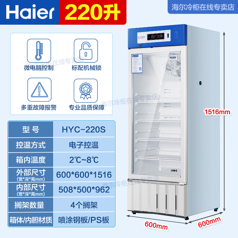 海爾(Haier)2-8℃藥品冷藏箱陰涼柜實驗室醫(yī)院藥店醫(yī)藥品柜試劑保鮮冷藏柜展示柜風(fēng)冷無霜冰柜衛(wèi)生院疫苗冰箱 HYC-220S 藥品冷藏柜2-8℃ 自營