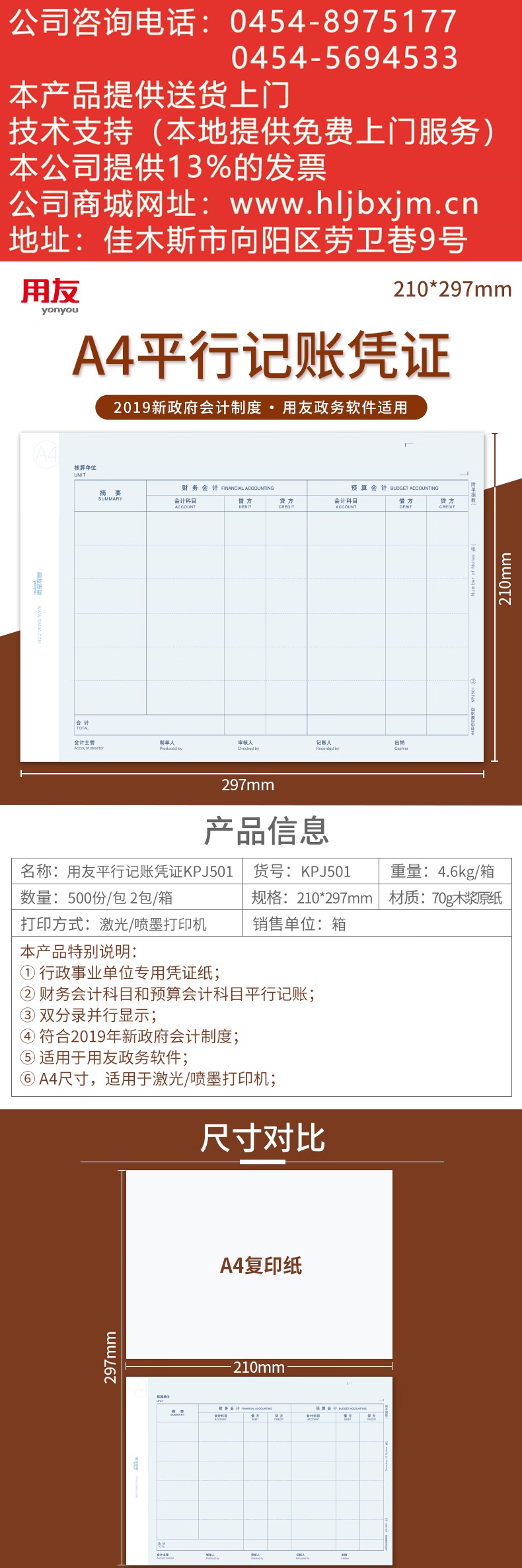 西瑪用友表單A4平行記賬憑證KPJ501--500份/包 2包/箱 297*210(整箱價)(整箱售) 自營
