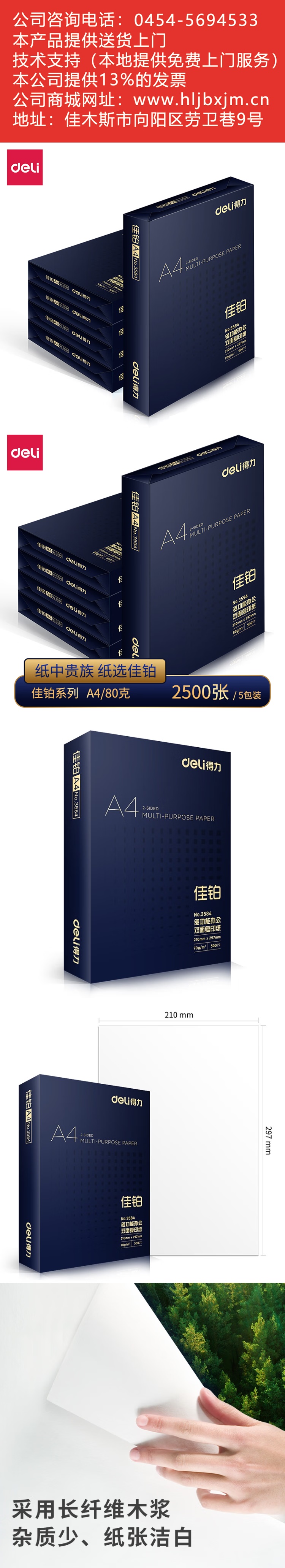 得力佳鉑A4打印紙8包70G 自營(yíng)