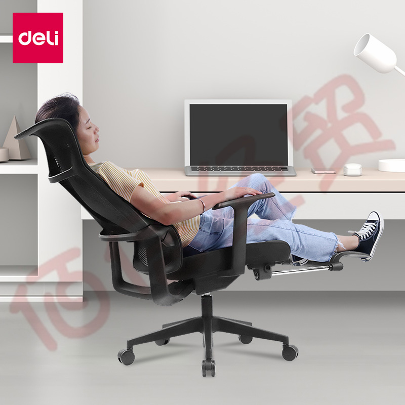 ■得力 deli 大角度可躺帶腳托午休電腦椅 人體工學椅 舒適辦公椅 91018 經(jīng)典黑