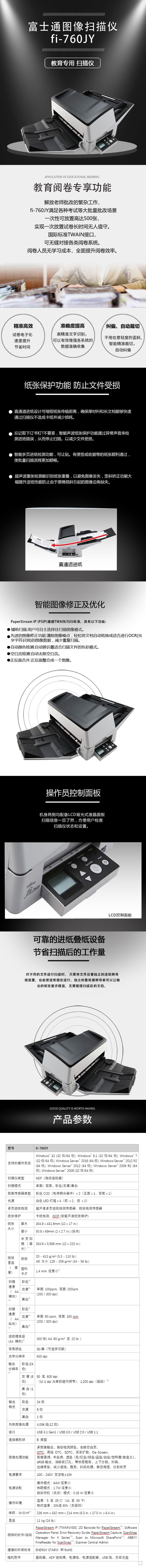 富士通(fujitsu)fi-760JY 教育專用饋紙式A3高速雙面掃描儀 試卷文件檔案高清掃描 自營