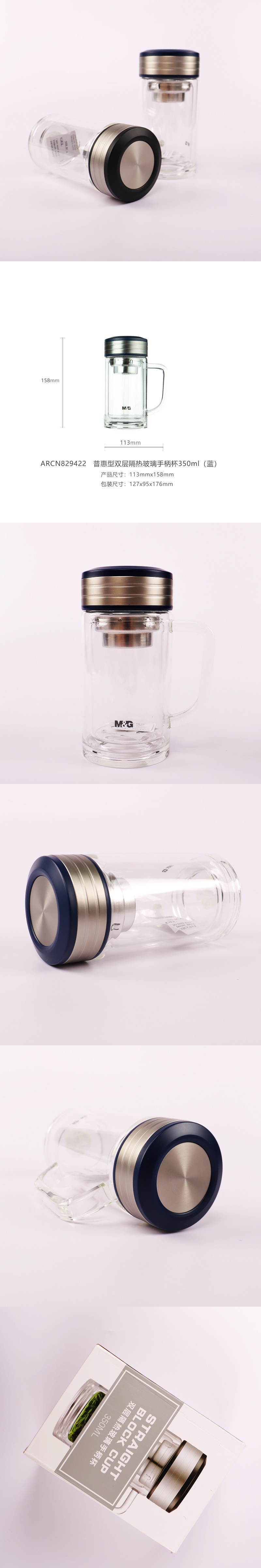 晨光普惠雙層隔熱手柄杯350ml黑ARCN8294 自營