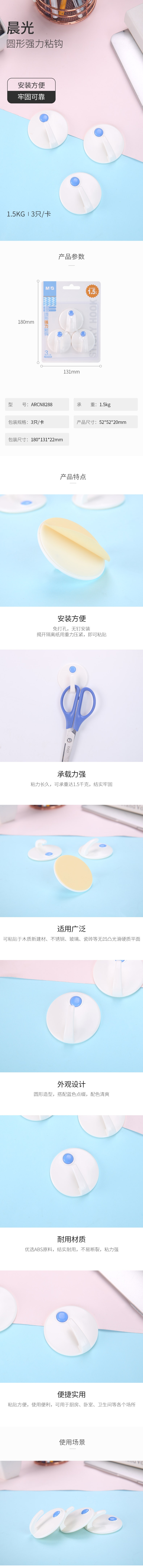 晨光圓形強力粘鉤1.5kg(3只裝)ARCN8288