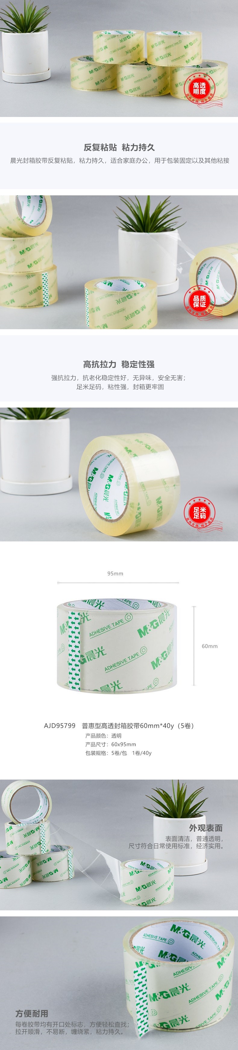 晨光普惠高透封箱膠帶60mm*40y5卷AJD95799 自營(yíng)