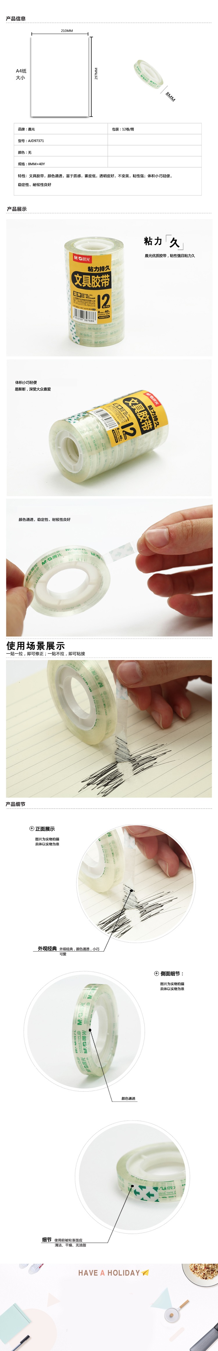 晨光文具膠帶8mm*40y(12卷)AJD97371(5筒裝) 自營(yíng)