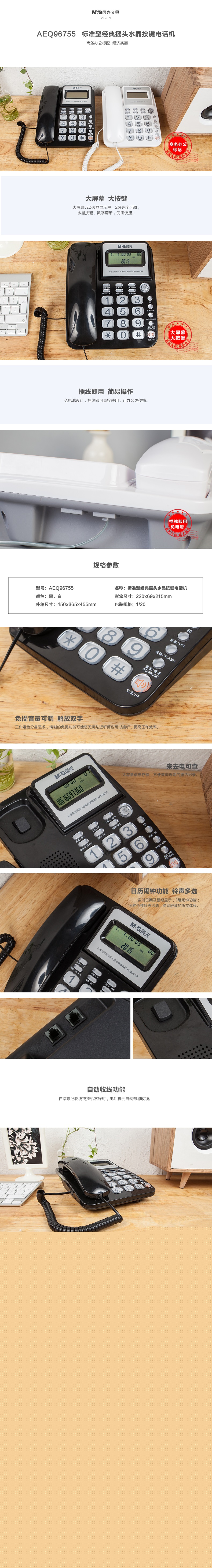 晨光標(biāo)準(zhǔn)經(jīng)典搖頭水晶按鍵電話機(jī)AEQ96755黑 自營