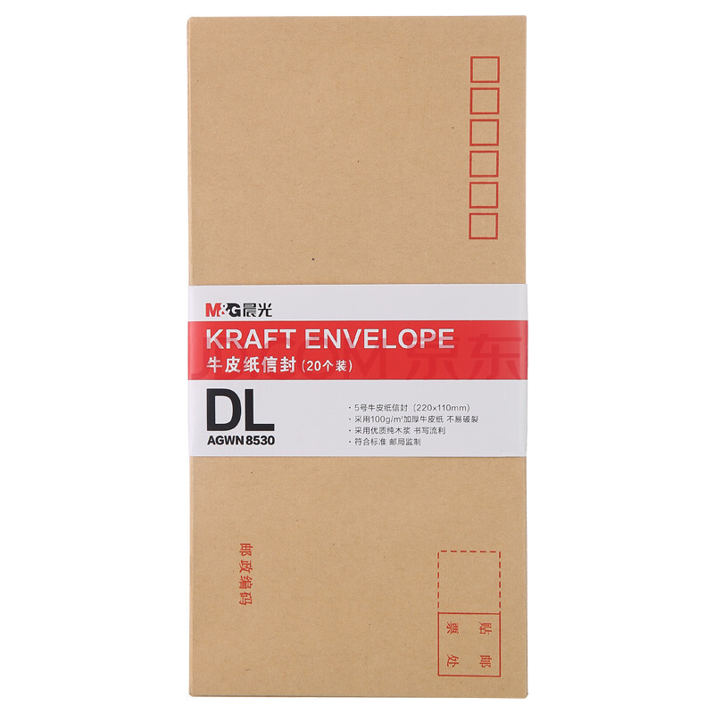 晨光DL牛皮紙信封AGWN8530( 20個裝) 自營