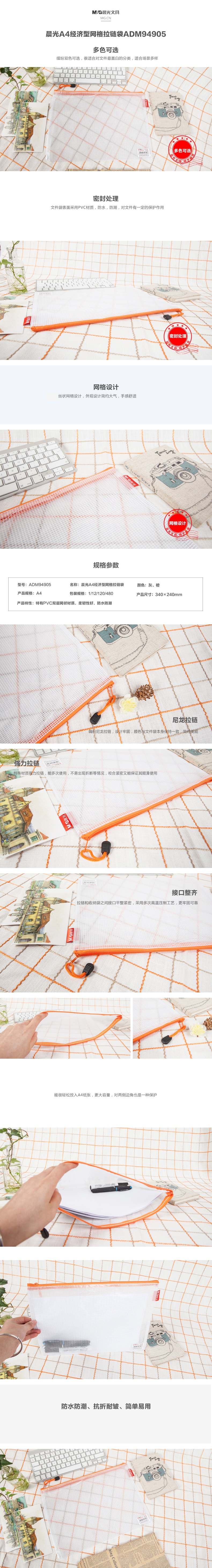 晨光A4經(jīng)濟型網(wǎng)格拉鏈袋ADM94905 自營