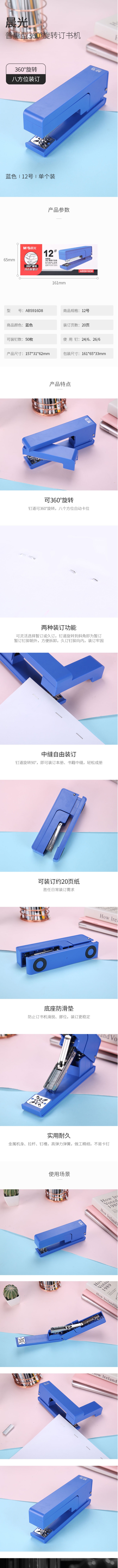 晨光普惠型360°旋轉(zhuǎn)12號訂書機灰ABS916D8 自營