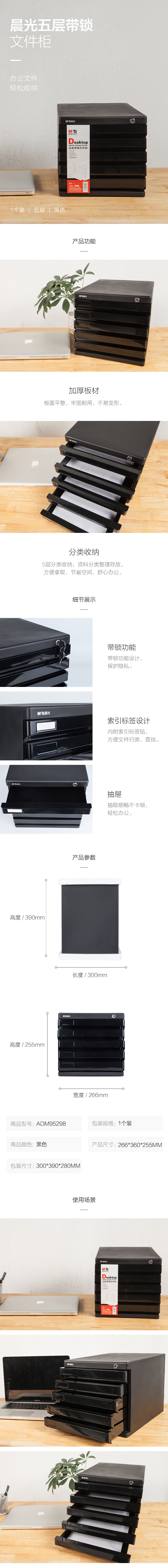 晨光五層帶鎖文件柜ADM95298(黑) 自營