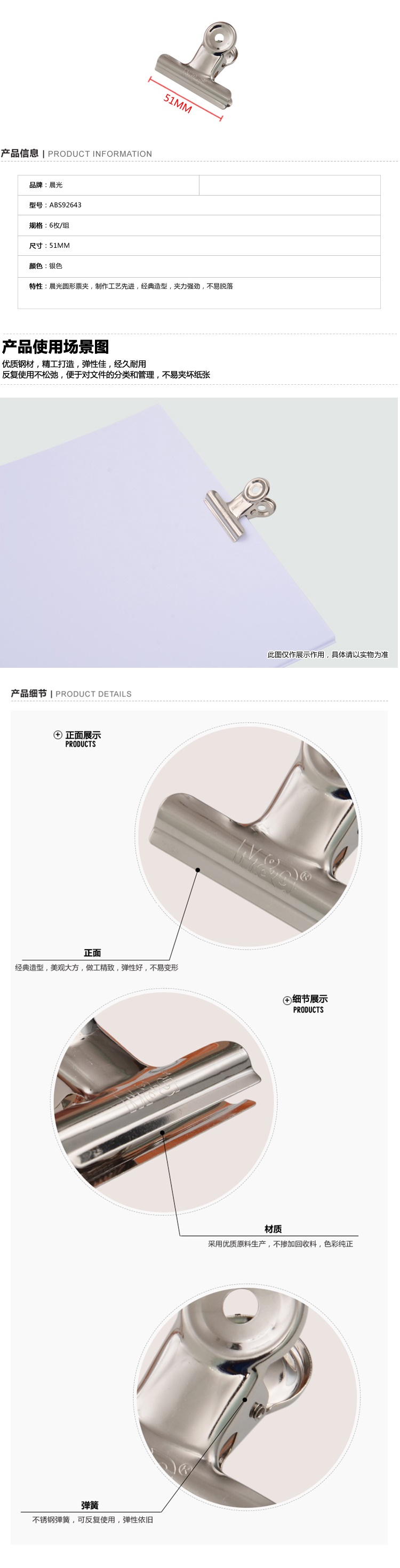 晨光51mm圓形票夾ABS92643 自營(yíng)