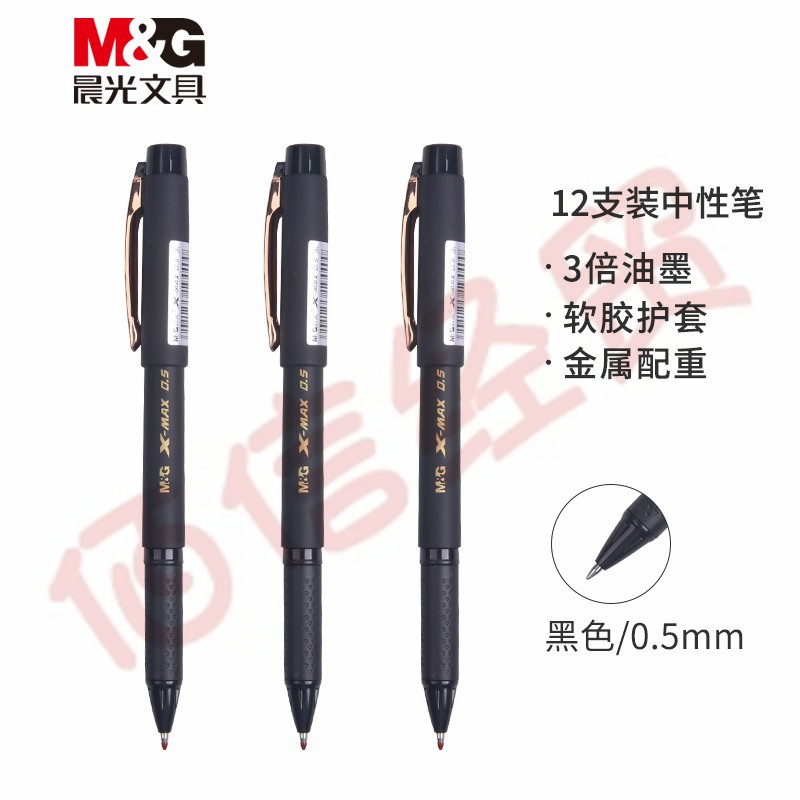 得力(deli)0.5mm黑色中性筆金屬?lài)娖峁P 子彈頭簽字筆 12支/盒