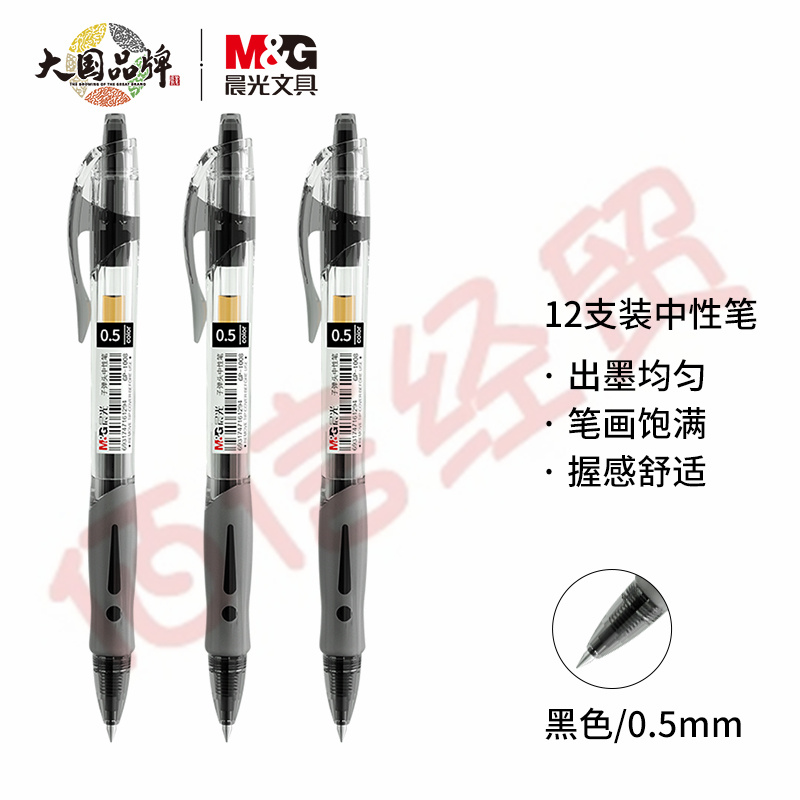 得力(deli)0.5mm黑色中性筆金屬噴漆筆 子彈頭簽字筆 12支/盒