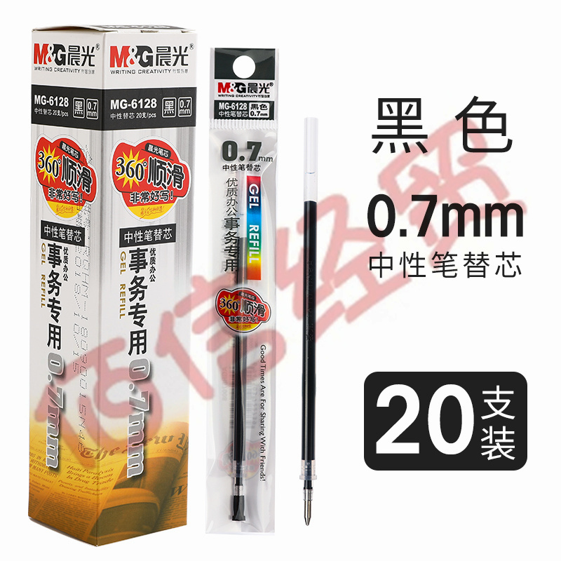 ■晨光-中性筆筆芯0.7mm子彈頭-MG-6128-黑色20支 自營