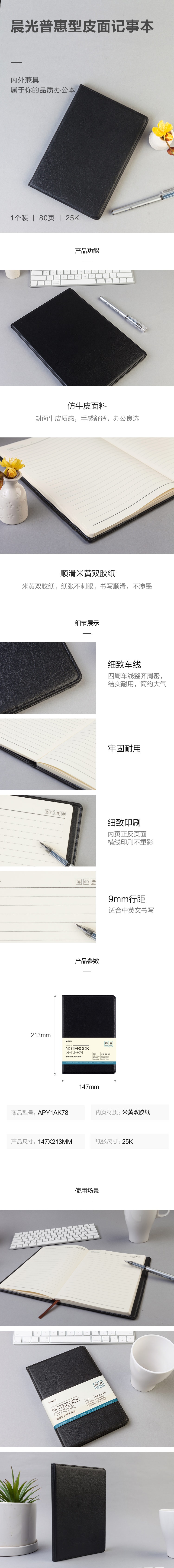 ■晨光(M&G)A5/80張辦公筆記本 會(huì)議記錄皮面本 日記本商務(wù)記事本子 單本裝APYG455D