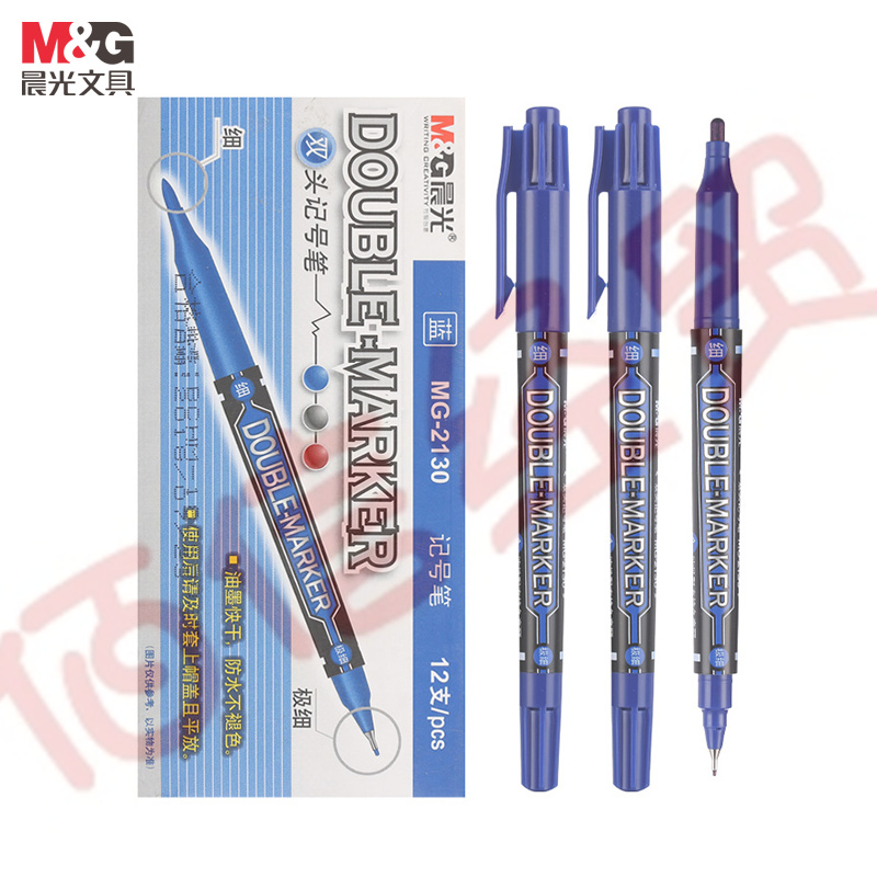 ■晨光雙頭記號(hào)筆-MG2130-藍(lán)-12支/盒 自營(yíng)