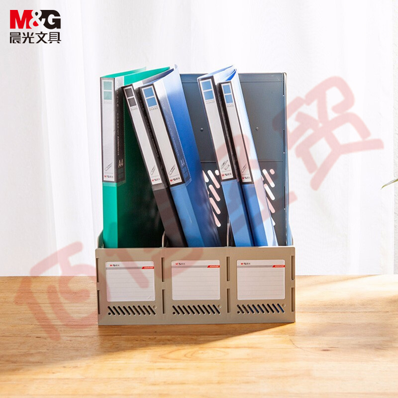 ■晨光(M&G)三聯(lián)鏤空桌面文件框 三欄帶標(biāo)簽穩(wěn)固文件欄/文件筐/資料框 灰色單個裝ADMN4397 自營