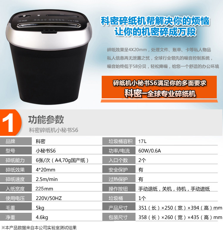 科密S6碎紙機(jī) 小型多功能便攜式桌面小秘書(shū)單位辦公家用文件粉碎機(jī)段狀 6張5分鐘17升碎紙光盤(pán)卡 科密S6標(biāo)配 自營(yíng)