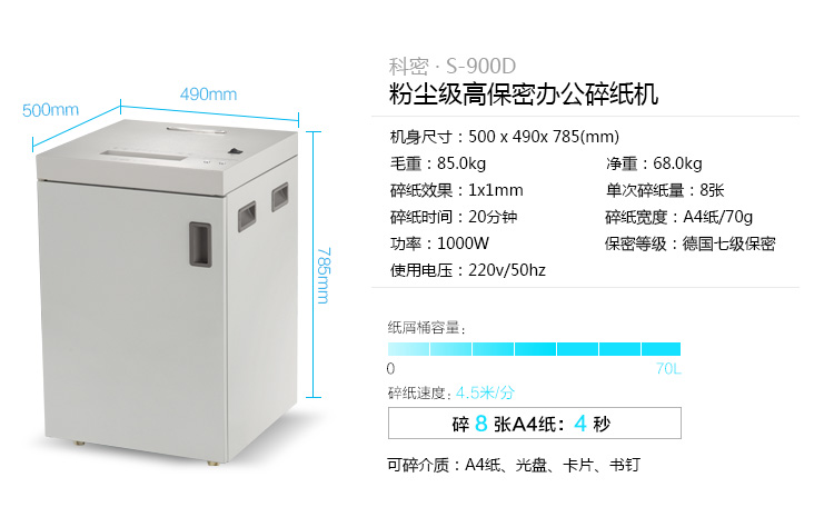 科密 (comet) S-900D 多功能大型長時間德國7級高速辦公碎紙機(jī) 光盤粉碎機(jī) 自營