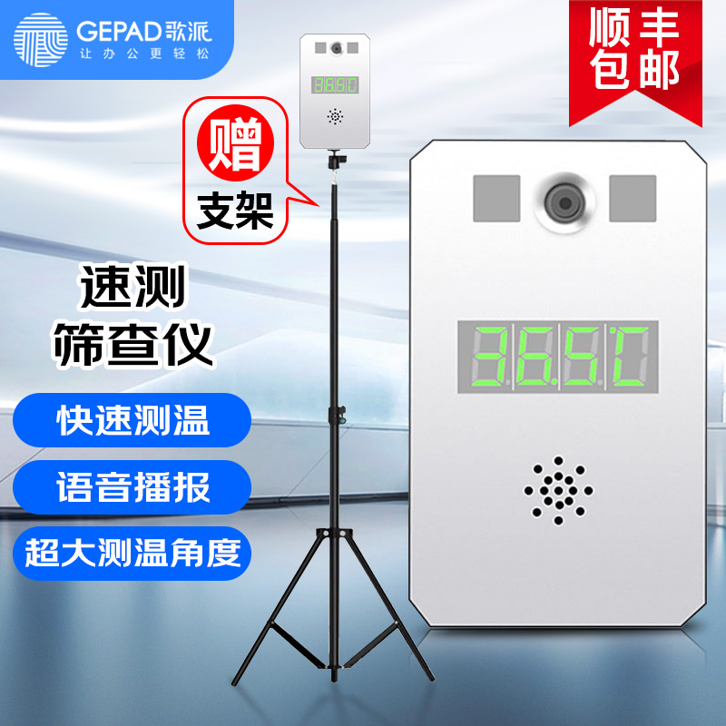 歌派(GEPAD)紅外線自動測溫儀 額溫手溫測溫槍 高精度體溫檢測儀 語音報(bào)警立式非接觸式溫度計(jì)YCW-500