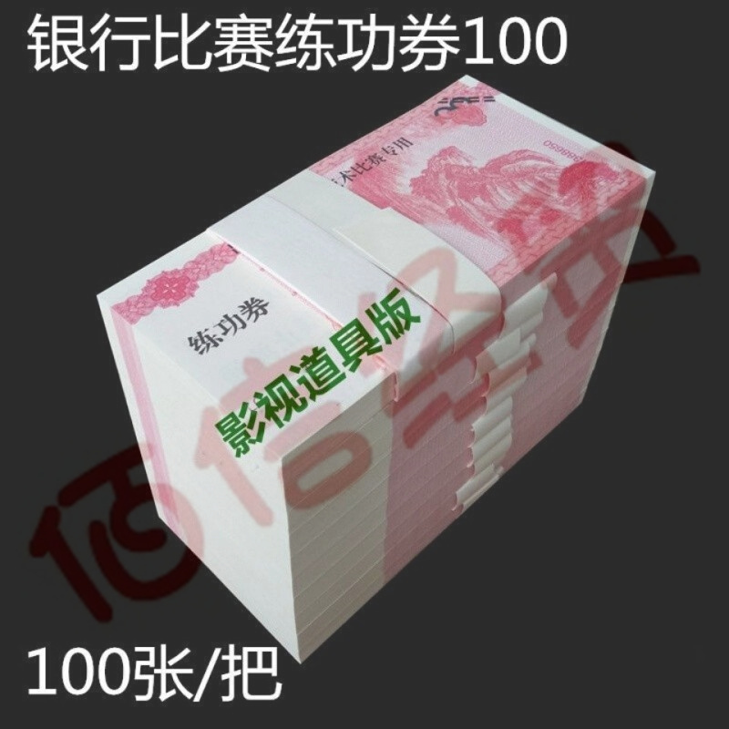 仿真銀行練功專用練功卷 視頻道具各種面額逼真比賽券練習(xí)鈔 特種100元 (一箱200把) 自營
