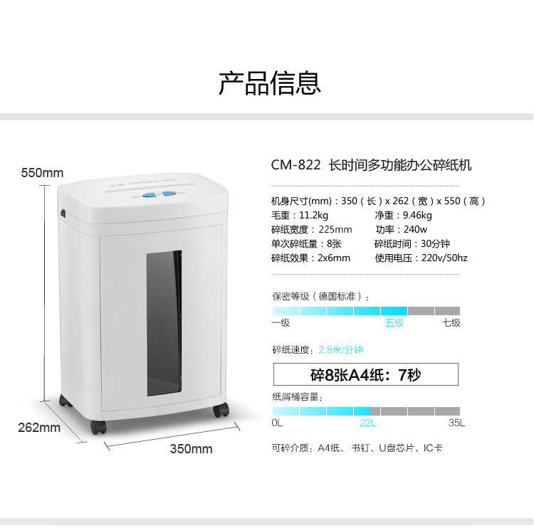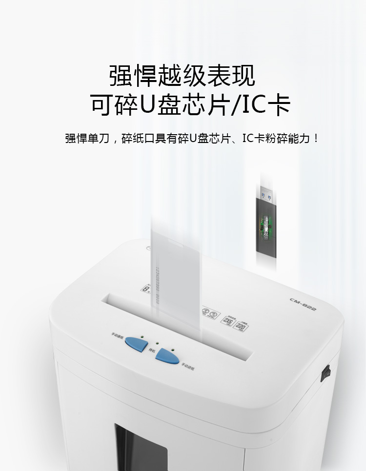 科密碎紙機(jī)CM-822 多功能存儲(chǔ)介質(zhì)銷毀機(jī) 可碎紙、IC卡、芯片 國(guó)保測(cè)認(rèn)證保密等級(jí)二級(jí) 22L 自營(yíng)