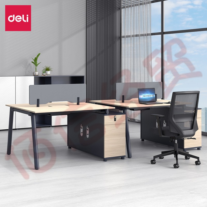 ■得力(deli)辦公家具 辦公桌組合單人 雙人職員桌 簡(jiǎn)約現(xiàn)代四人桌 配儲(chǔ)物柜機(jī)箱柜 DP007二人位 木紋 自營(yíng)