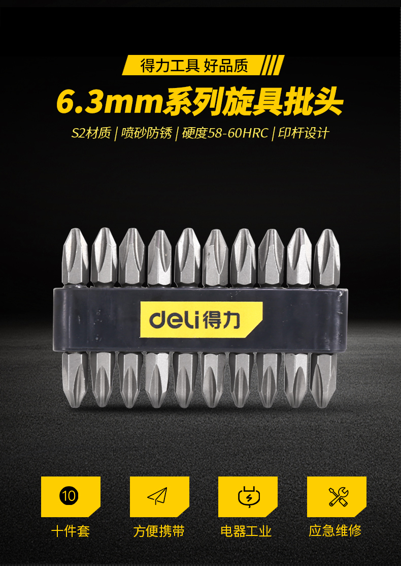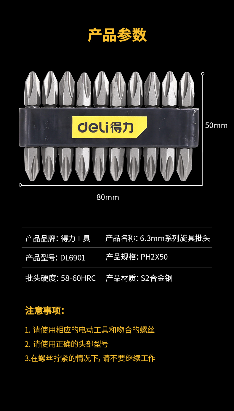 ■得力DL6901電動螺絲刀強磁批頭十字風批頭特級強磁圈披P頭s2手電鉆批頭套裝50mm 6.3MM系列旋具批頭PH2x50