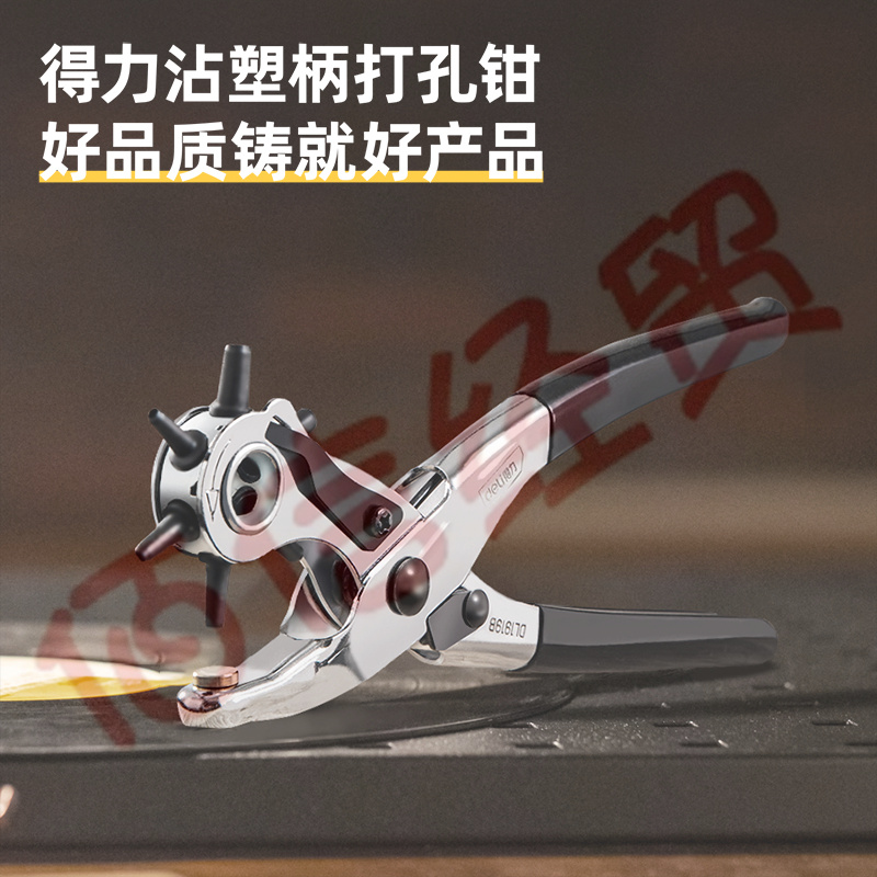 ■得力(deli)工具皮帶打孔器家用小型打洞器腰帶打孔鉗打孔神器包包打眼器打孔機 簡易沾塑柄打孔鉗 6孔徑圓孔 DL1919B 自營