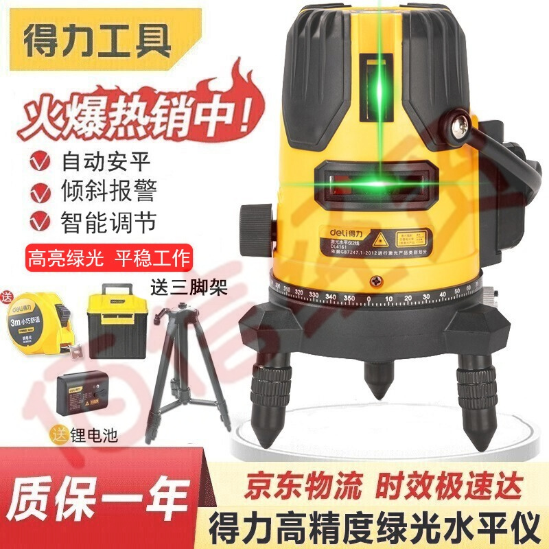 ■得力(deli)水平儀投線儀激光2線3線5線高精度紅外線綠光室內外強光自動打線標線儀 2線水平儀DL4161 自營