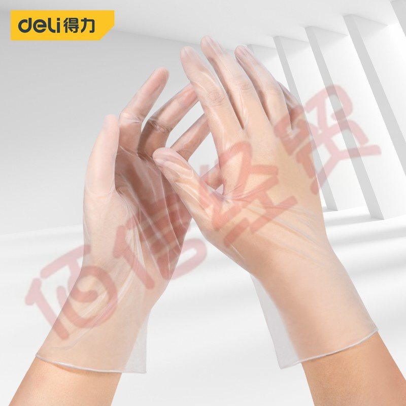 ■得力(deli)DL521050L 一次性透明PVC手套食品級(jí)透明勞保餐飲清潔【L碼】50只/盒