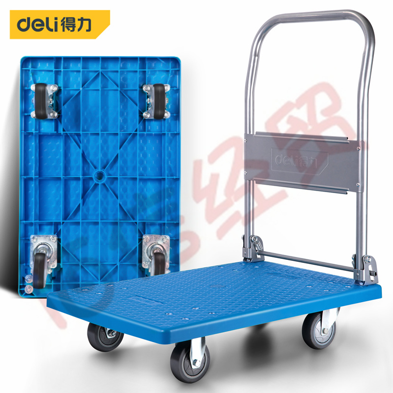 ■得力(deli)輕音輪平板車手推車折疊手拉車拖車小推車?yán)涇囁芰习徇\(yùn)車 小號(hào)73x47cm 承重約300斤 DL431150 自營(yíng)