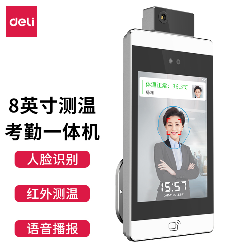 得力(deli) DL-ACS803-TW 人臉識(shí)別測(cè)溫門禁考勤一體機(jī) 8英寸屏幕顯示 (壁掛式) 自營(yíng)