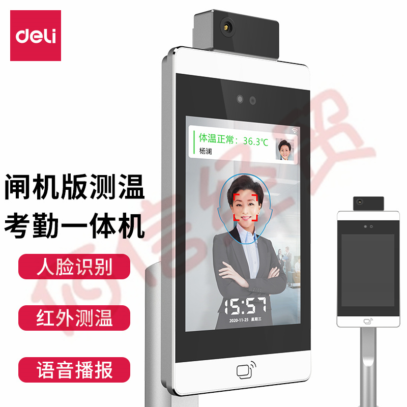 ¥736.00得力(deli)DL-ACS804-TW 人臉識(shí)別測(cè)溫門禁考勤一體機(jī) 8英寸屏幕顯示醫(yī)院學(xué)校寫字樓快速測(cè)溫識(shí)別(閘機(jī)版)